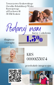 Czytaj więcejTowarzystwo Krakowskiego Ośrodka Rehabilitacji Wieku Rozwojowego KRS 0000133074 to organizacja pożytku publicznego, która jako stowarzyszenie została założona w 1993 roku.